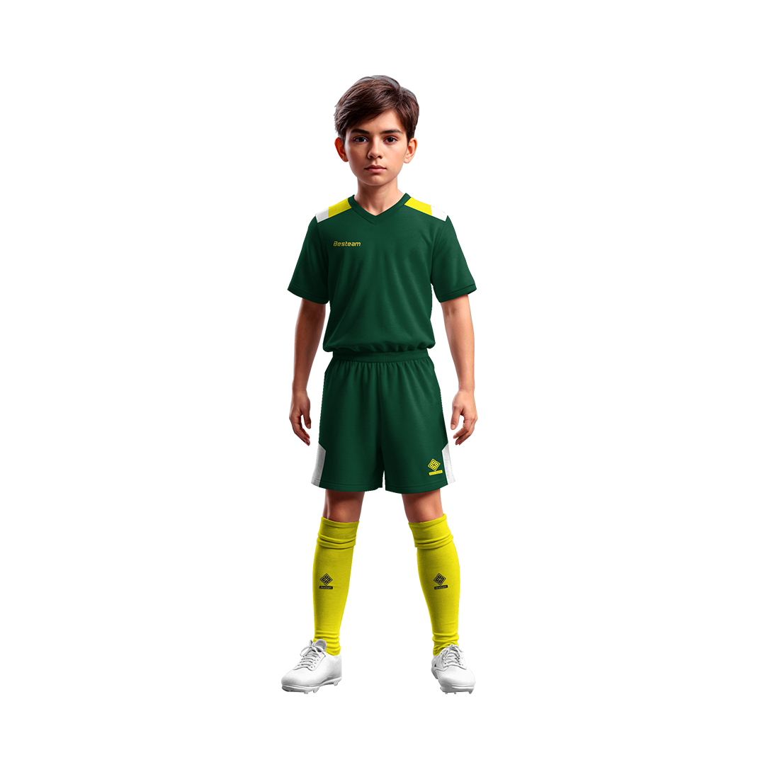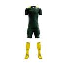 Introducing the Levante Kit in Green/Yellow/White – a dynamic fusion of style and functionality! This kit boasts a striking dual-color design, perfect for both game day and rigorous training sessions. Crafted from lightweight, quick-drying interlock fabric, it ensures optimal comfort and performance. Plus, it's customizable to match your club's colors (MOQs apply). The set includes a jersey, shorts, and socks for a complete and cohesive look. Elevate your team's performance with this versatile, high-quality kit