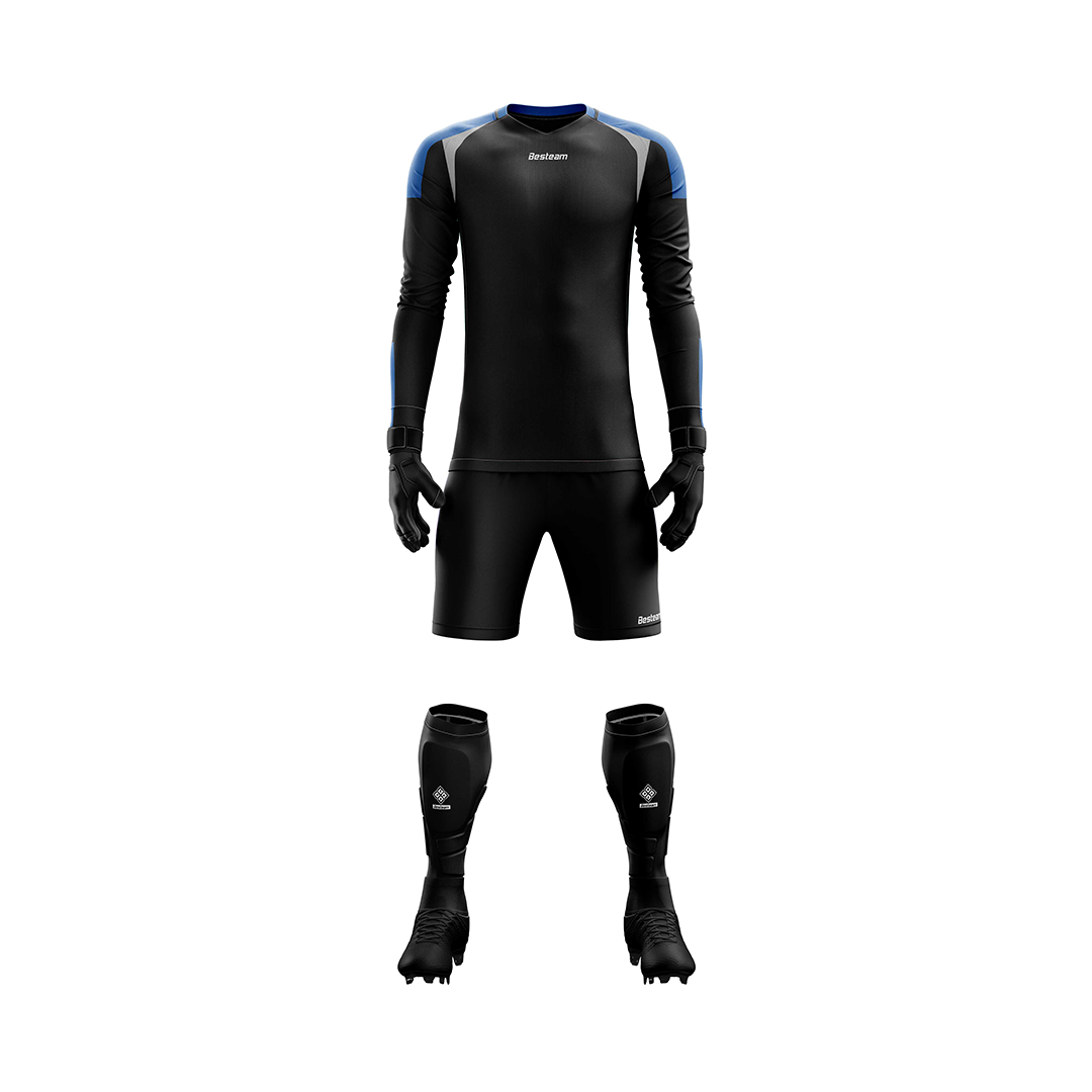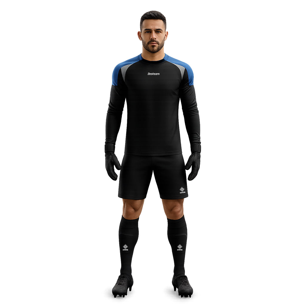 Stay unbeatable on the field with the Besteam Dida Padded Long Sleeve Goalkeeper Kit, available in four striking color combinations: Black/Lake Blue, Fluro Orange/Black, Fluro Yellow/Black, and Red/Black.