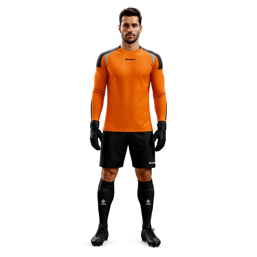 Stay unbeatable on the field with the Besteam Dida Padded Long Sleeve Goalkeeper Kit, available in four striking color combinations: Black/Lake Blue, Fluro Orange/Black, Fluro Yellow/Black, and Red/Black.