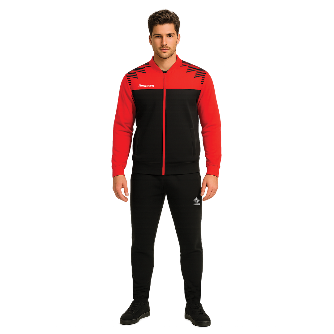 Crafted from high-quality tricot polyester fabric, this tracksuit offers both style and durability, ensuring you look your best both on and off the field. The ribbed collar and cuffs provide a comfortable fit, allowing you to move with ease during any activity.